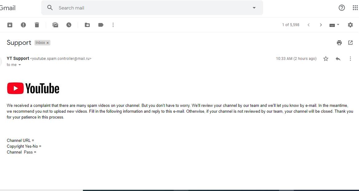 @TeamYouTube Please share this so people can be aware of this. Someone tried to scam me of my YouTube channel. This is an email that I got what is supposed to be from YouTube!pic.twitter.com/4BtAjLsMp3