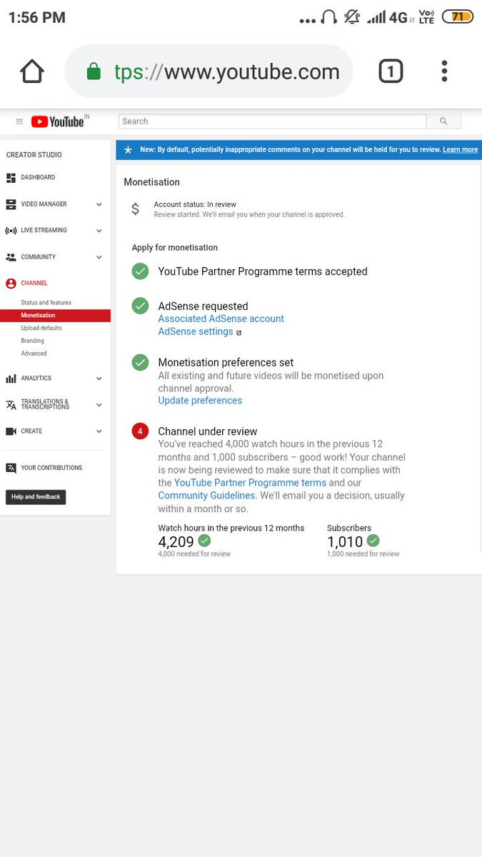 @TeamYouTube Dear Team YouTube I have Already Completed 4k Hour And 1k Subscriber in previous 365 Days And My Channel is Under Review till one month , but monetization is not enable , Please Guide us.. https://www.youtube.com/channel/UCl8VSbWV6rzn9K6lxJp56BQ …pic.twitter.com/Q7f4cCHDrf