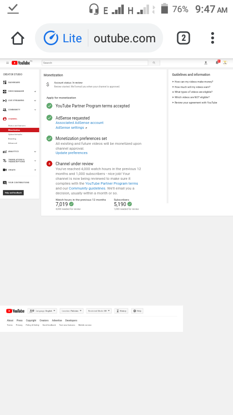 @TeamYouTube Hi team YouTube. My channel completed 1000 subscribers and 4000 public watch hours watch time. In previous 12 Month but my channel still under review after one month please help us. My channel link: http://YouTube.com/Azeeminfo  My channel Name: Azeem info Thank you.pic.twitter.com/2D7XOCP4D3