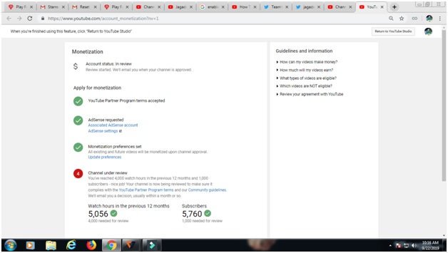 @TeamYouTube Dear team youtube, I have already completed 4,000 watch hours and 1,000 subscribers in previous 1 year and my channel is under review till 6 month but monetazetion is not enable, please review my channel. my channel : https://www.youtube.com/c/JagadeeshH pic.twitter.com/t2gG7NFz4R