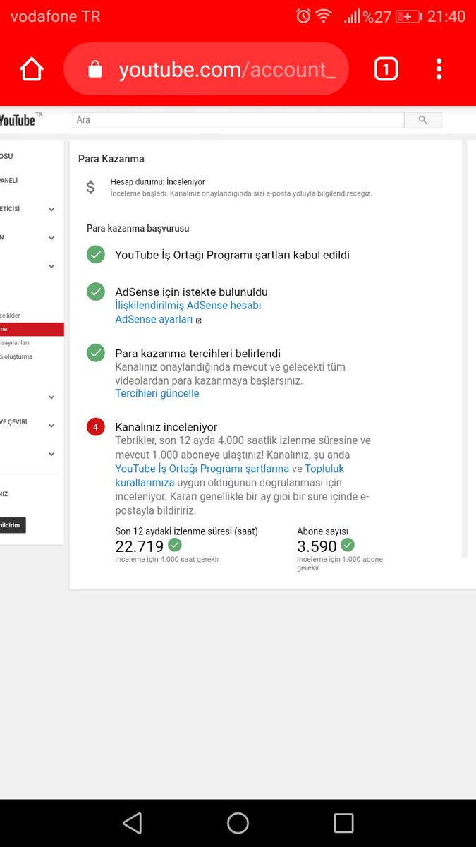 @TeamYouTube 4 months ago, I was put on hold for deleting my videos, but I've finished watching again I have completed the terms of 4000 hours and 1000 subscribers at the moment, but did not receive news Help Me YouTube Team Youtube Channel https://www.youtube.com/channel/UC5v-cECSwgQiJMu7ZNMIBkw …pic.twitter.com/RnQLATg1Gv