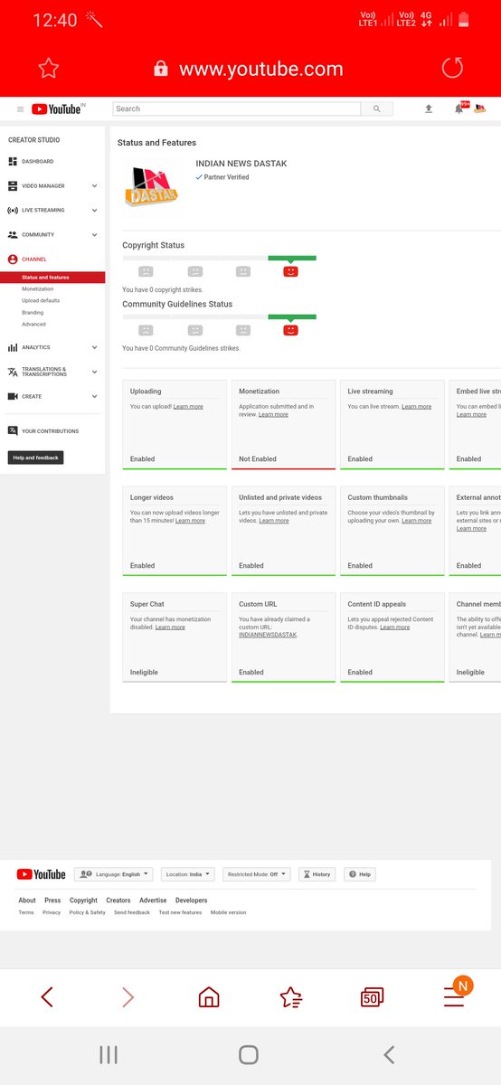 @TeamYouTube My channel has no copyright and no community guidelines and no content is claimed, even after that, YouTube has not yet reviewed my channel. Review is due in two monthspic.twitter.com/M4NLfwWlwl