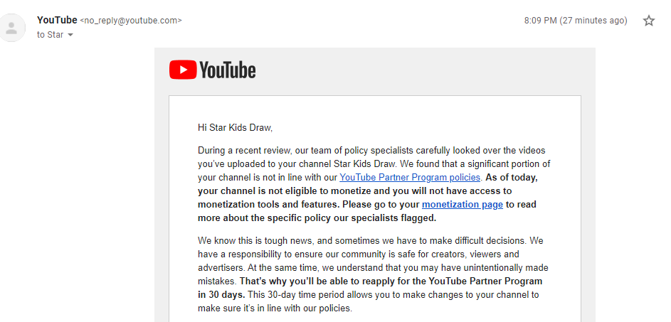 Hello Youtube Team , Today I lost monetize in my channel Star Kids. All videos created by me. Everything by the rules. Educational materials. Can you tell me where the problem is. Thank youpic.twitter.com/tJG4hRsHzK
