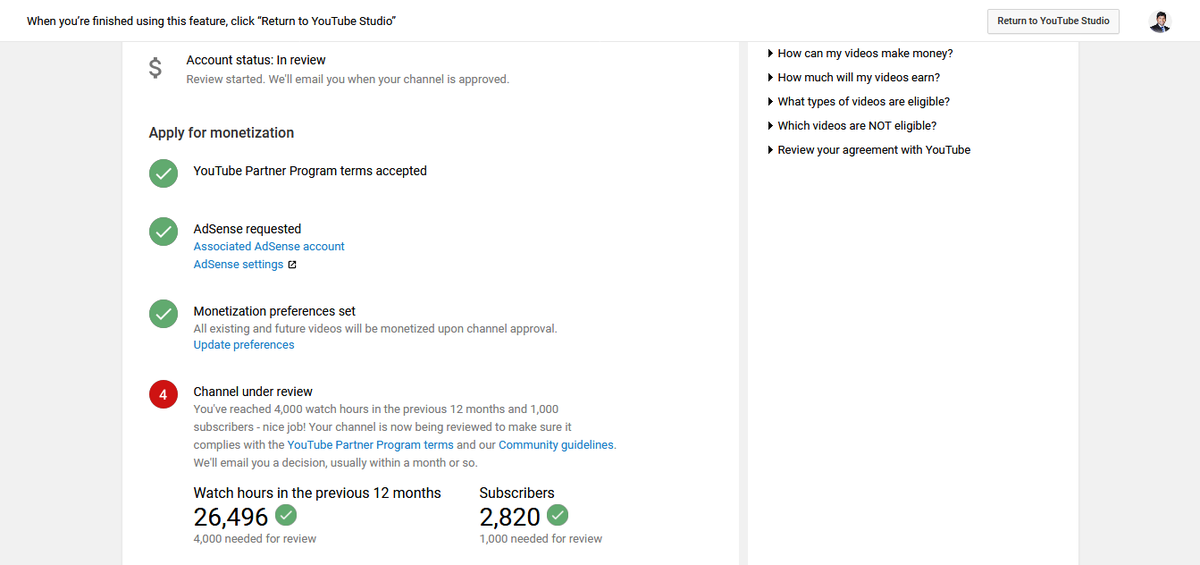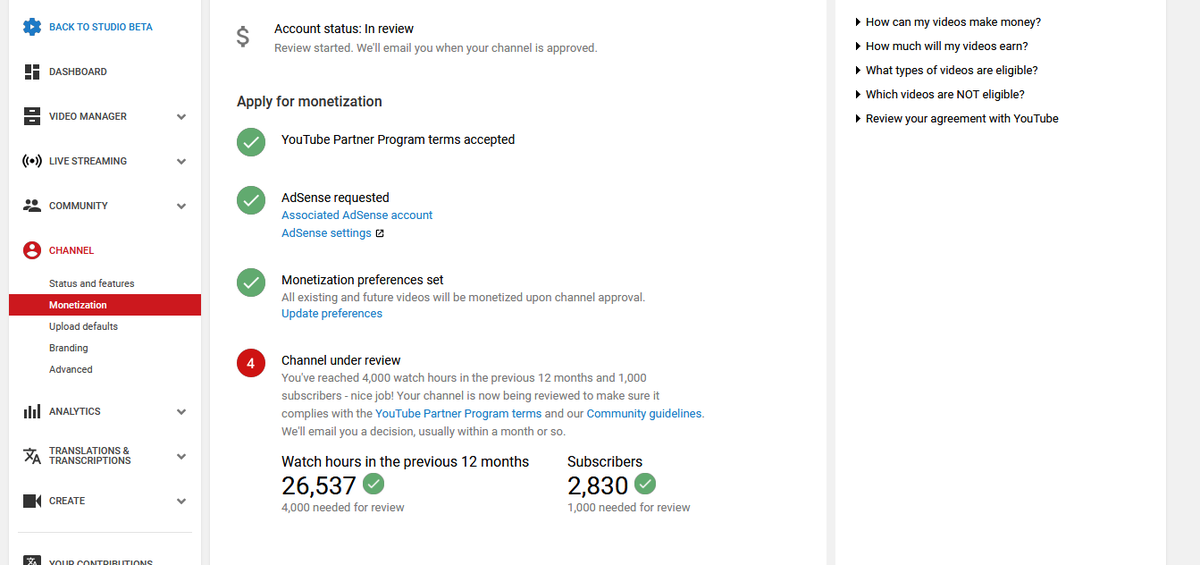 Dear YouTube Team,I have been under review for Monetization since 64 days .I am well over the required watchtime and subscriber counts.Please let me know if everything is Ok or who I can get in touch with to move my application forward. Channel link: https://www.youtube.com/account_monetization?nv=1 …pic.twitter.com/t1Ln1io0xZ