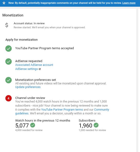 @TeamYouTube Dear team YouTube I have already Completed 4K hours and 1K subscriber in previous 365 days.But monetization of May channel is not Enable yet.kindly request to Enable may channel monetization Please guide us help me on monetization Channel URL: http://Www.youtube.com/saddamhusainsitapuri …pic.twitter.com/vtRS3Qnl5Z
