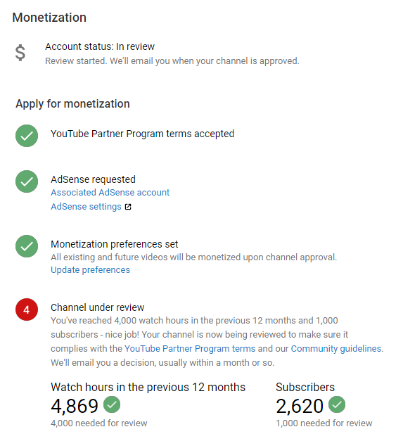@TeamYouTube i think youtube team forget to review my youtube channel. I have already completed 4K hours watch time 1K subscribers in previous 365 Days and channel is still under review till 15 days. but my montization is not enable. please guide us. URL: https://www.youtube.com/channel/UCrfZmAOGC7VFvnExImgWxew …pic.twitter.com/Fes5jkBDIJ