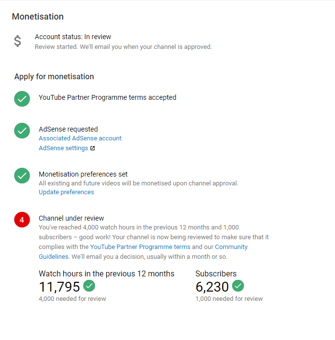@TeamYouTube Dear Team YouTube I have already completed 4k hour And 1k Subscriber In Previous 365 Days And My Channel is under review till two month. but Monetization is not enable. Please guide us..... https://www.youtube.com/channel/UC_hp7yUTEUZc6bZ05CFoVww …pic.twitter.com/yTG33LUA4f
