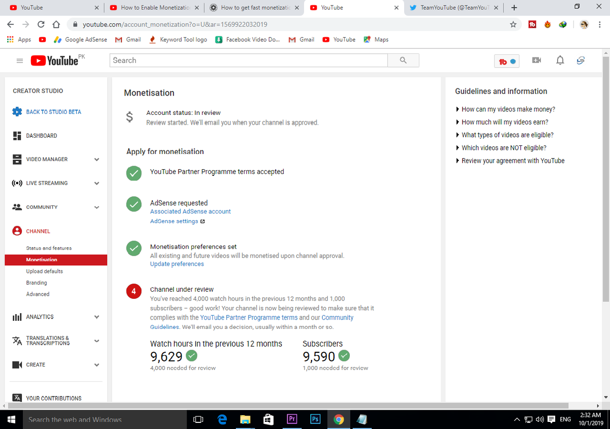 @TeamYouTube Dear Youtube Team, According to YouTube policy a user must have 4000 watch hours and 1000 subscribers to enable monetization, As I have already reached 9629 Watch hours and also completed my 9,590 Subscribers. My request you to please review my channelpic.twitter.com/0OyrTCIAsK
