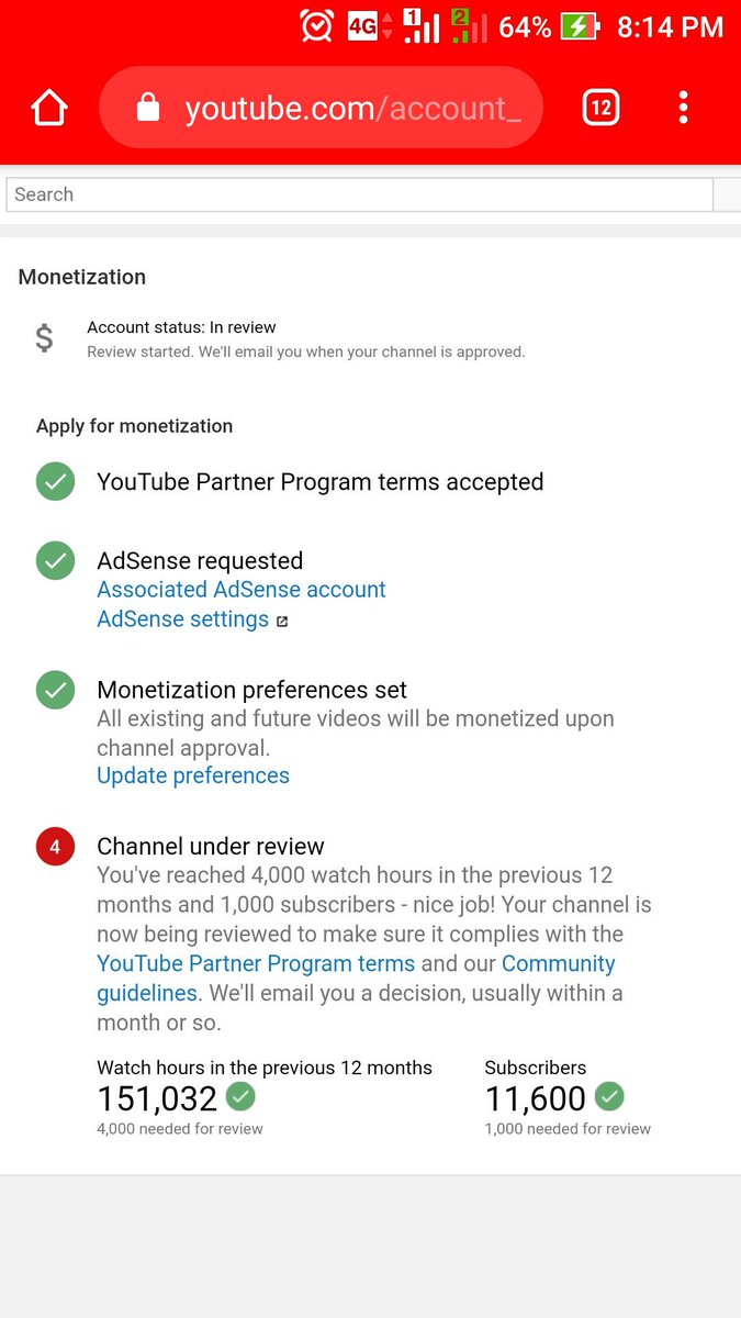 Yth @TeamYouTube, Setelah tercapainya persyaratan untuk monetisasi, yaitu 4000 jam tayang dan 1000 subscribers, maka saya mohon agar channel saya bisa segera dilakukan peninjauan. Nama channel : SolusiChannel URL : https://www.youtube.com/user/SolusiChannel … Salam dan Terimakasih.pic.twitter.com/AW0ptzaCZh