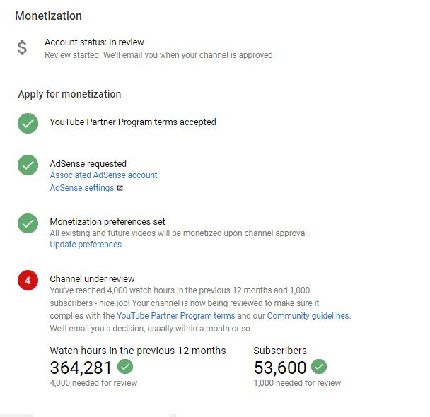 @TeamYouTube 364281 watch hours and also completed my 53600 Subscribers. My request you to please review my channel and enable monetization as soon as possible. My Channel Link : https://www.youtube.com/channel/UCNEhyxajKUBtysUYYrO-A3A/videos?app=desktop&persist_app=1 …pic.twitter.com/fKQz7Uo6Zy