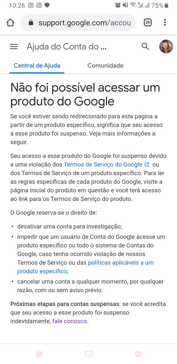 Aparece essa página. Tentei mandar um e-mail descrevendo o problema igual fiz aqui e a resposta foi que continuará suspenso :( O que posso fazer?pic.twitter.com/AyyE6scHZ7