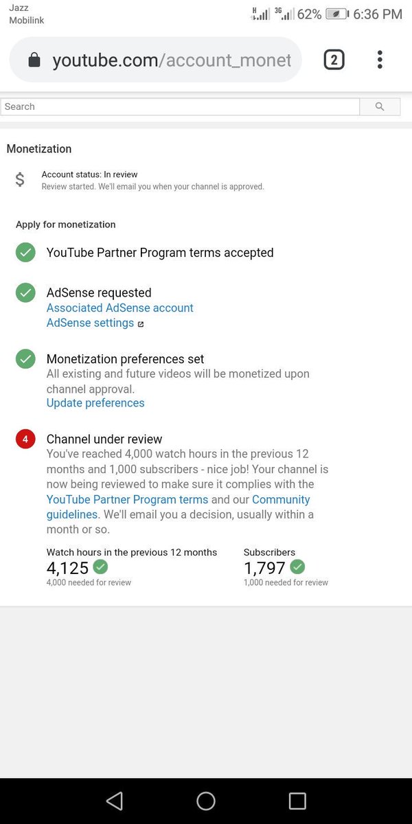 @TeamYouTube @TeamYouTube Dear Team YouTube I have already completed 4k hour And 1k Subscriber in previous 365 Days and my channel is under review till one month. But monetization is not enable. Pls guid us..My channel link. https://www.youtube.com/channel/UCCwR3VQysjd-FPcjVFq4xgA?app=desktop …pic.twitter.com/XEUeI7cMoQ