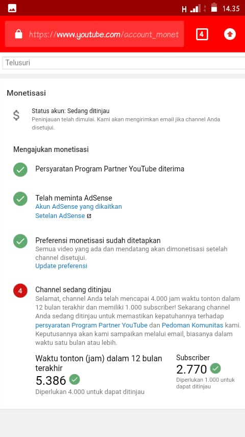 Hai Kak Tri, bisa jadi channel kamu tdk punya waktu tontonan publik yg cukup dalam waktu 12 bulan terakhir, atau tim kami belum dpt keputusan dari review awal, jadi channel kamu akan di-review kembali. Silahkan cek postingan ini untuk info lebih lanjut: https://yt.be/help/YPP-review .