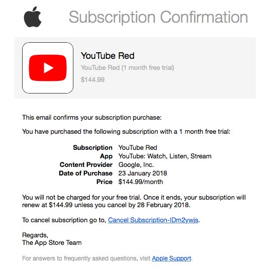 @TeamYouTube I inadvertently "subscribed" to YouTube Red, and the "cancel" link sends me to http://Ask.fm . Please help me cancel—or is this a phishing scam?pic.twitter.com/szfOO3NEPC