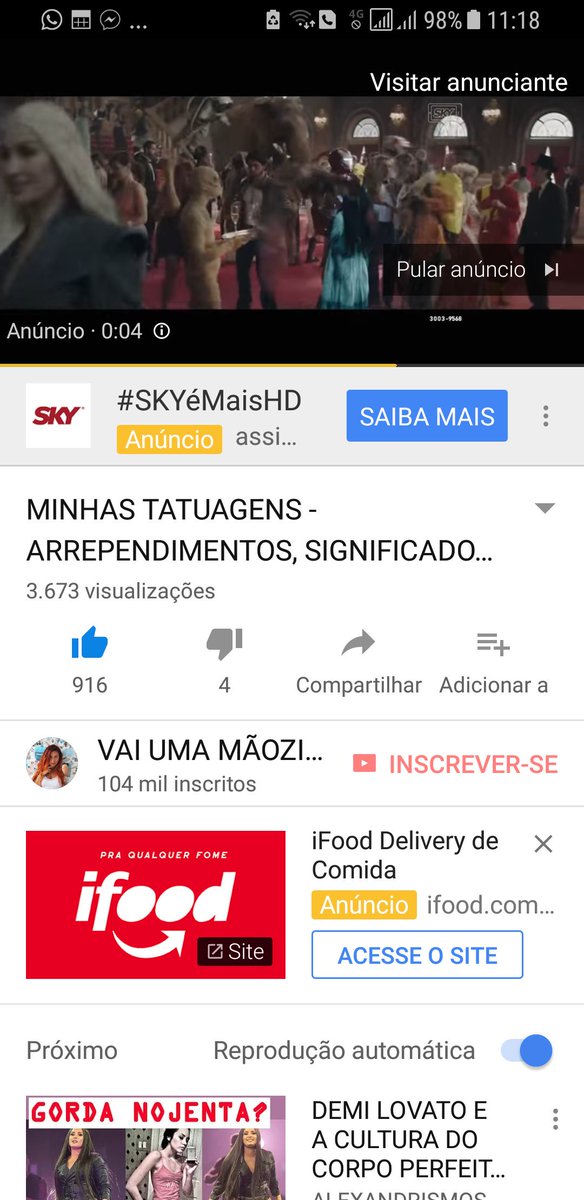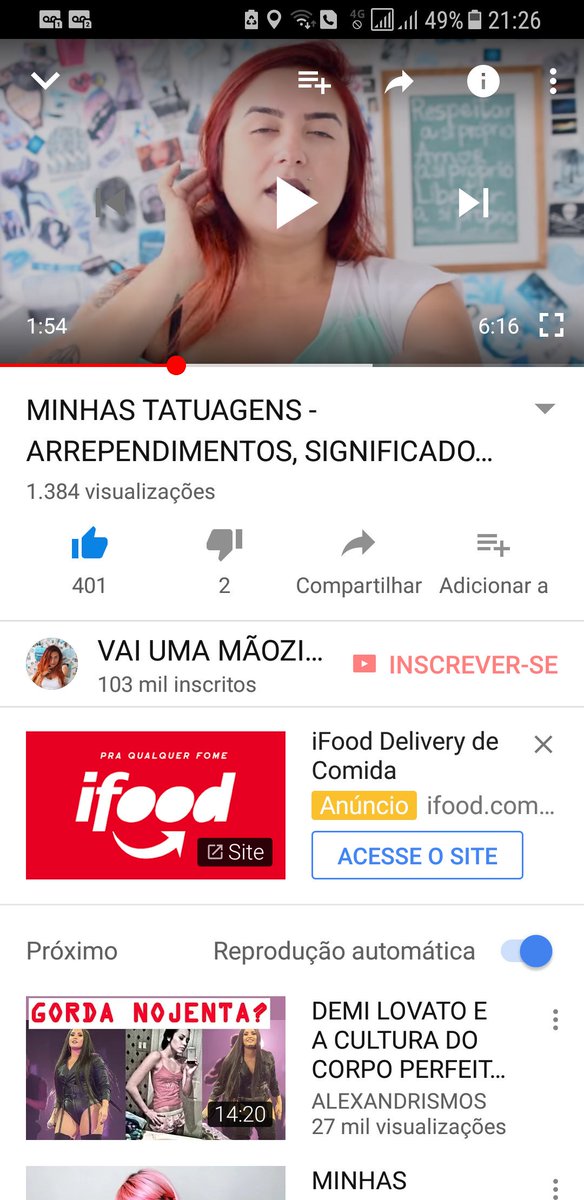 Pior que o vídeo foi analisado e considerado improprio. E tá com anúncio.