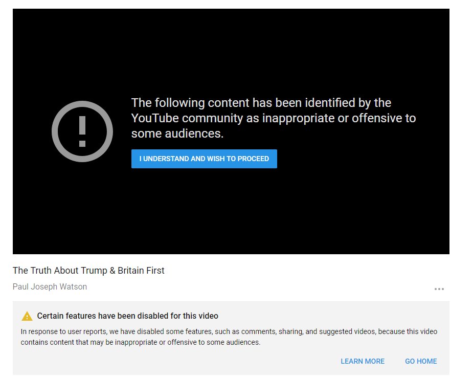 This has been put in limited state AGAIN, despite the fact that it was already appealed and brought out of limited state months ago YouTube thought police strike again. The video was a discussion of media narratives, NOT an endorsement of Britain First. https://www.youtube.com/watch?v=otgKNKiPYdU …pic.twitter.com/UvxNUaMqqA