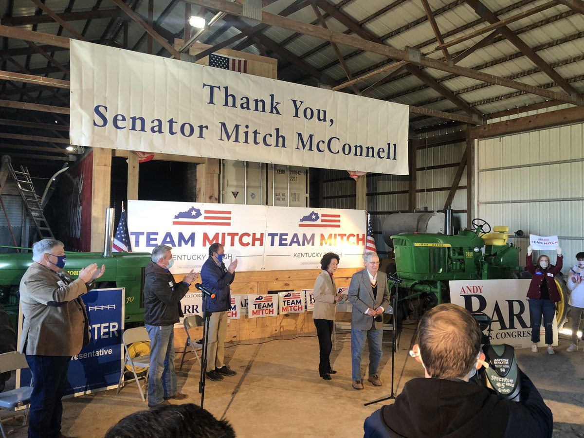 @Team_Mitch and@barrforcongress ! Thank you Leader McConnell and Sec Chao for visiting Versailles this morning as we close out the 2020 campaign!pic.twitter.com/5xGhvmb2ZS