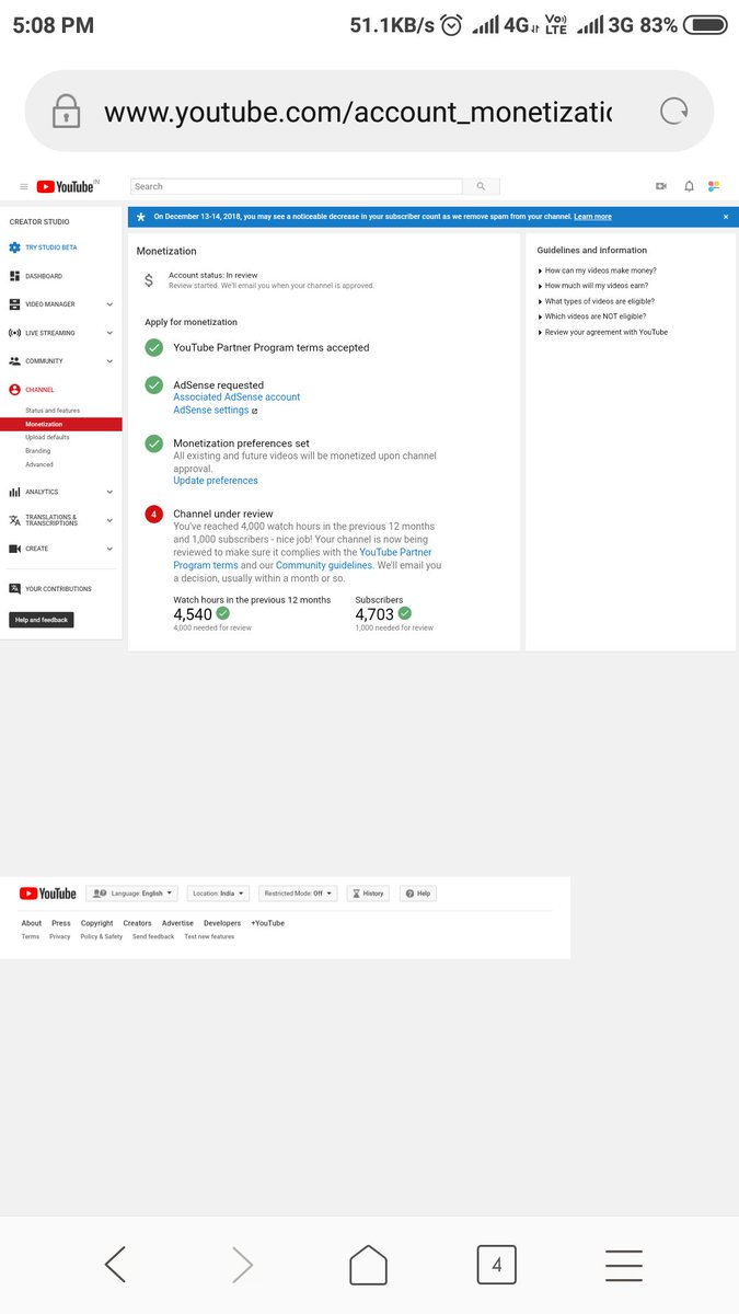 @YTCreators on my channel 1000 subscribers and 4000 hour time is complete, when my channel's monetization will start please tell me Channel Urlhttps://www.youtube.com/channel/UC9YFvjmjoI-PoRrnyGUcyZg …