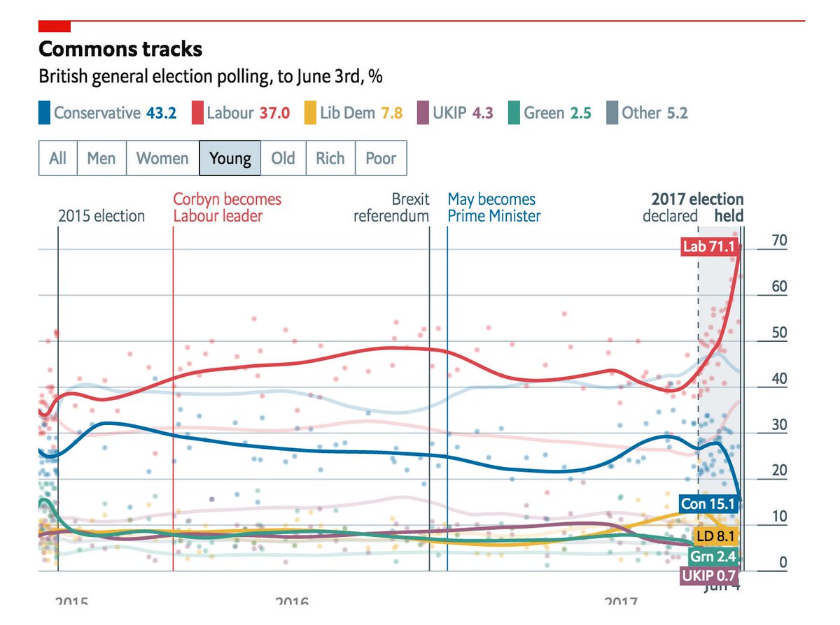 Graph looks very pretty. 70% LAB support for 18-24 very good. But means nothing unless you vote.