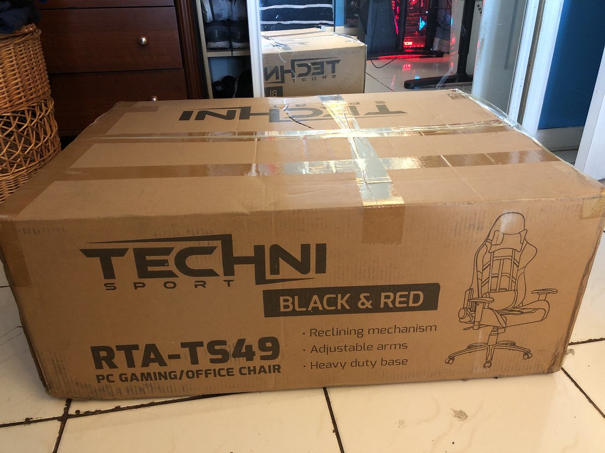 UPGRADE ALERT! Moving up in comfort and adjustability from his old office chair to a brand new Blue ProGamer Technisport chair ! Thank you