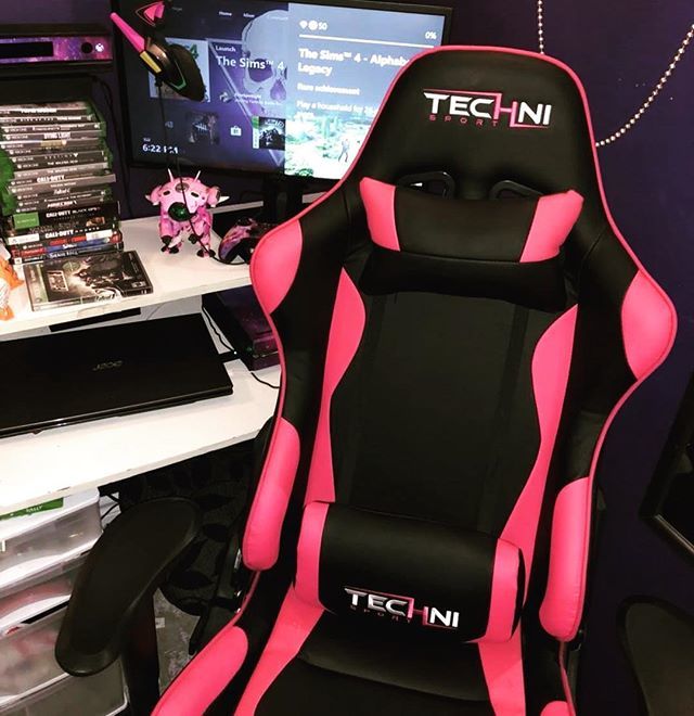 photo from @amouldydodoo gaming setup with her new Pink ProGamer Technisport chair... Ready for a brand new week of streaming and gaming?