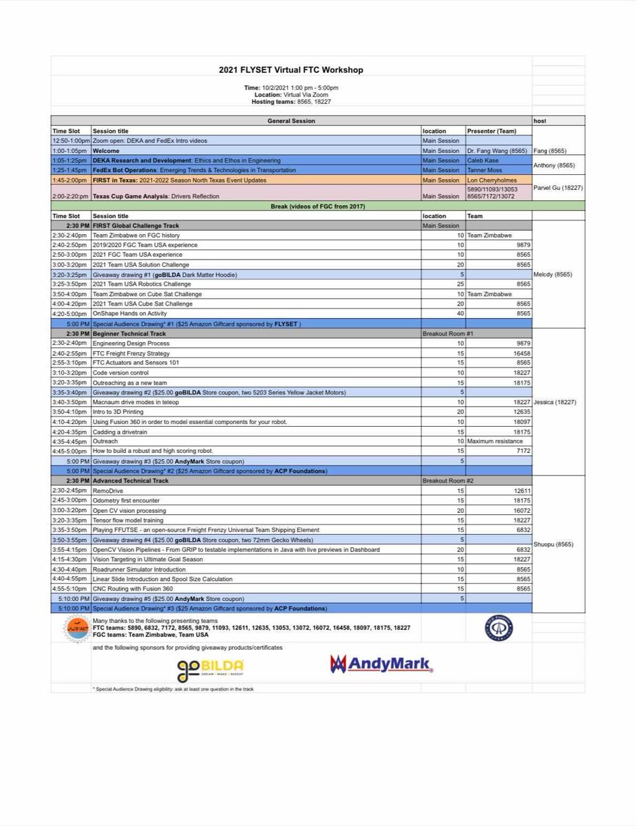 Here is the finalized version of the FTC Workshop schedule! Don’t forget to register if you haven’t already!