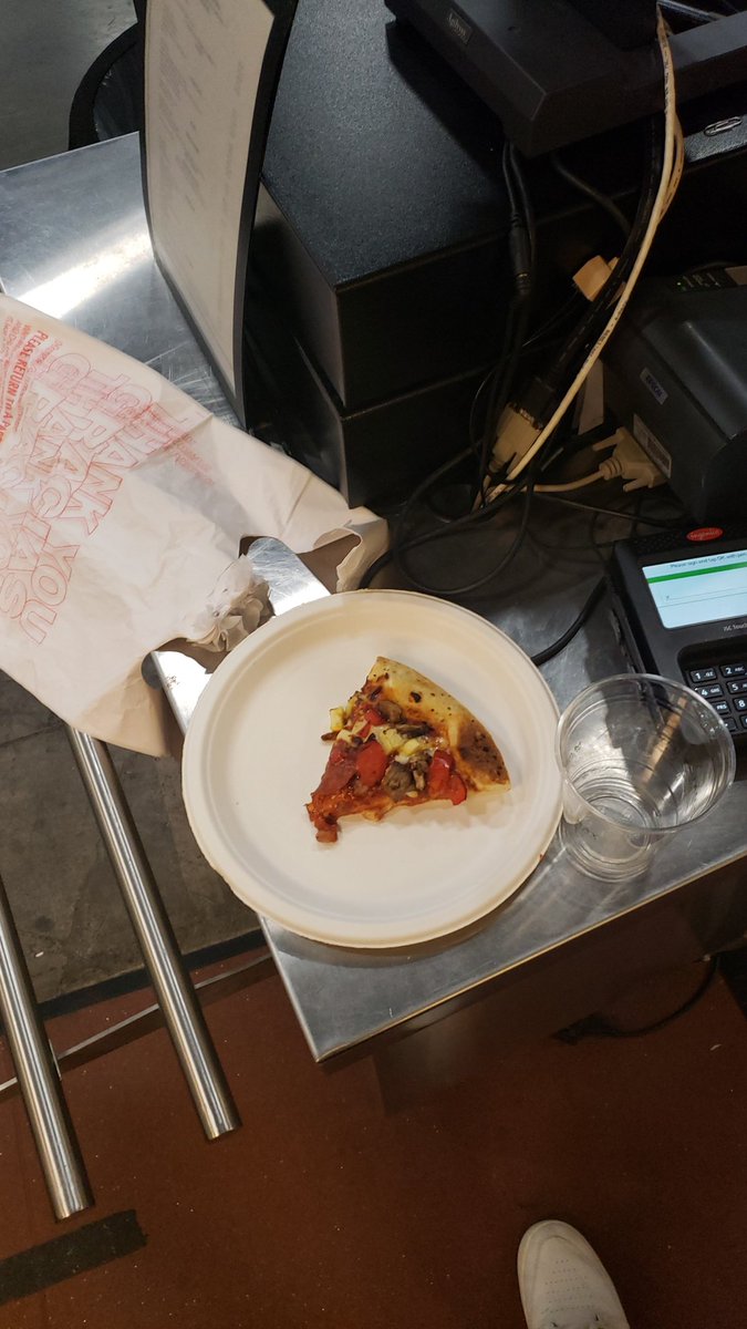 $5.50 for this crappy convetion slice. This slice is the size of a potato chip. I deadass better be full the entire day after eating this carebear slice of pizza. Yall really sitting here charging people a whole 4 for 4 at Wendy's for this once baby carrot ass slice. Got me f'd ^