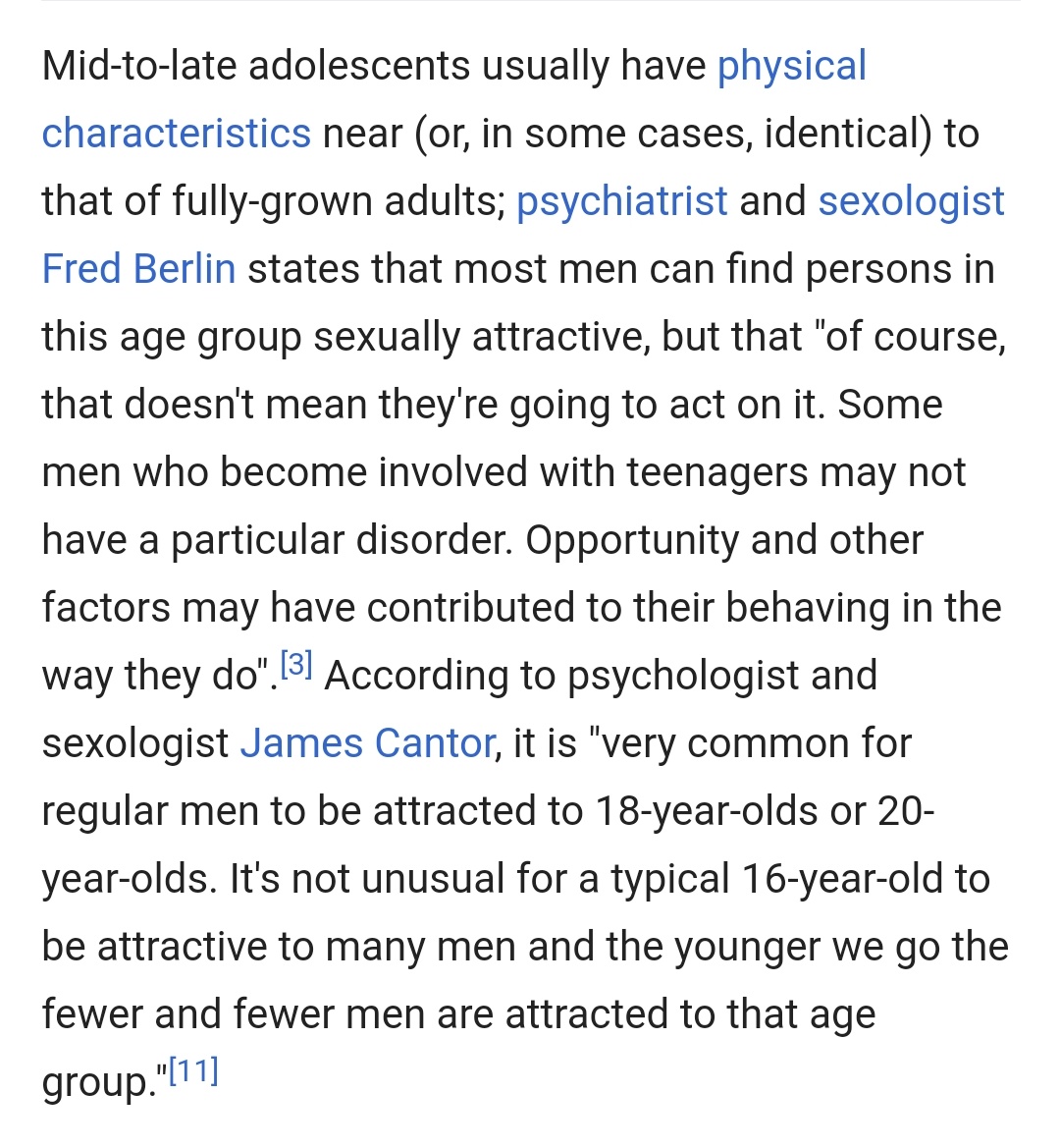 Don't forget to mention that according to Wikipedia the vast majority of men are to some degree ephebophiles. Now for a grown ass man to be acting on it is imo pretty fucking whack and gross but to act like it's weird for them to find a 17 year old attractive is ridiculouspic.twitter.com/U6HUfD6pKD