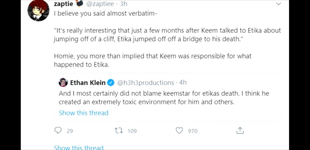 I think when “some youtuber” plays such a big role in Etika’s tragedy, it’s sort of relevant to bring up. I get that no one enjoys having to relive it, but Ethan was pretty respectful in regards to just simply weaponizing it. Keemstar inserted himself. So he can answer for ithttps://twitter.com/zerowondering/status/1262863819275210752 …