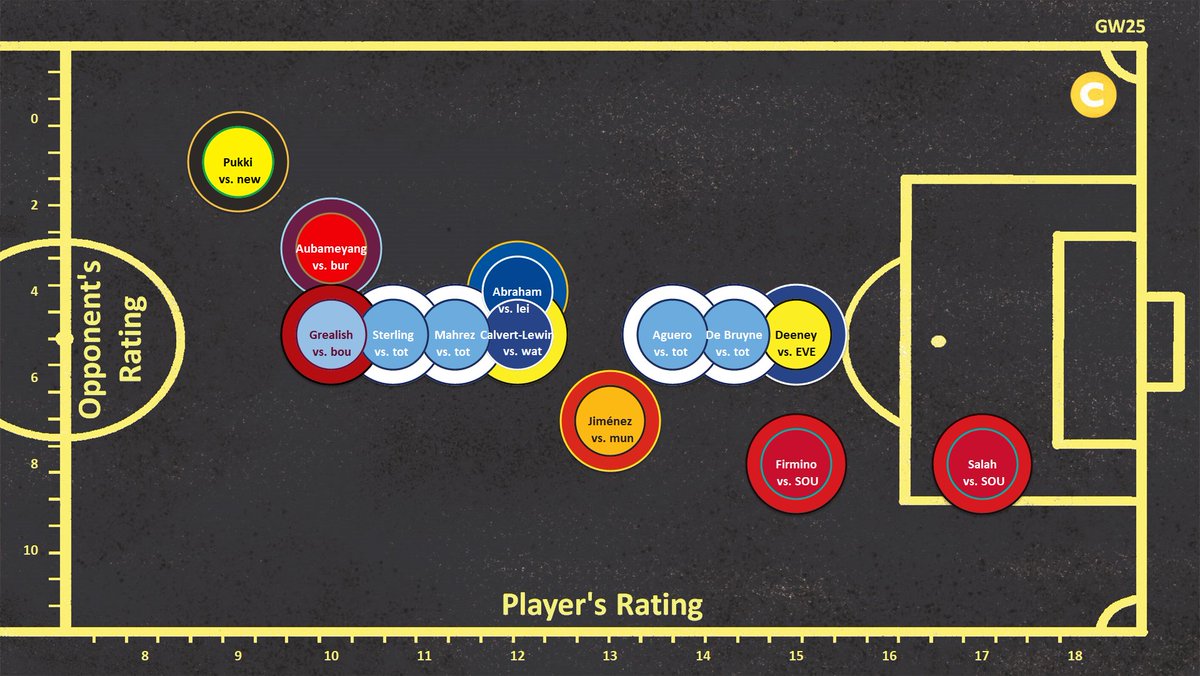 Closest to the top-right © wins, with the weakest opponent & best stats & form rating!