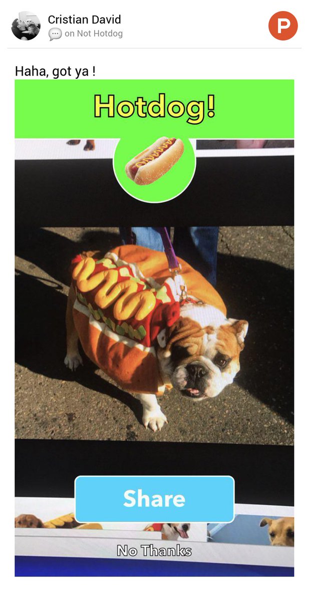 @SiliconHBO, What say? Cristian David's thoughts on Not Hotdog on@ProductHunt https://www.producthunt.com/posts/not-hotdog#comment-469033 …pic.twitter.com/xGfhkbFmOf