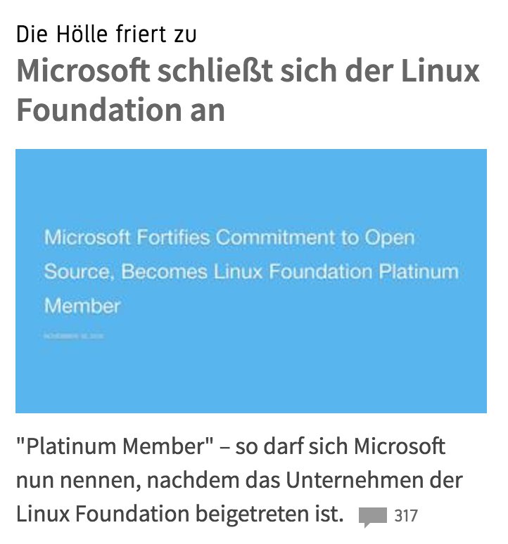 News zur Nacht: Microsoft schließt sich der Linux Foundation an http://www.heise.de/newsticker/meldung/Microsoft-schliesst-sich-der-Linux-Foundation-an-3486578.html … In diesem Sinne: #DieHölleFriertZu cc: @heiseonlinepic.twitter.com/iizwrOTv99