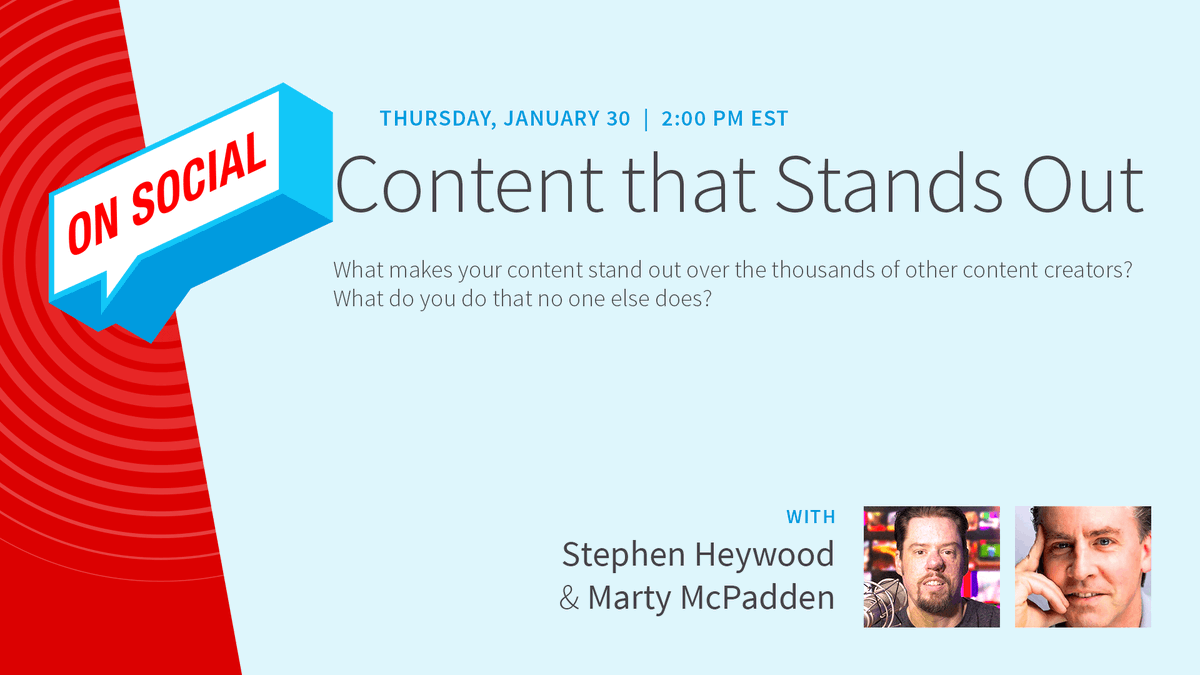 Create content that stands out! Join the on-social show at 2 pm EST to find out more! http://bit.ly/2tfr72S pic.twitter.com/Tob04kMFJB