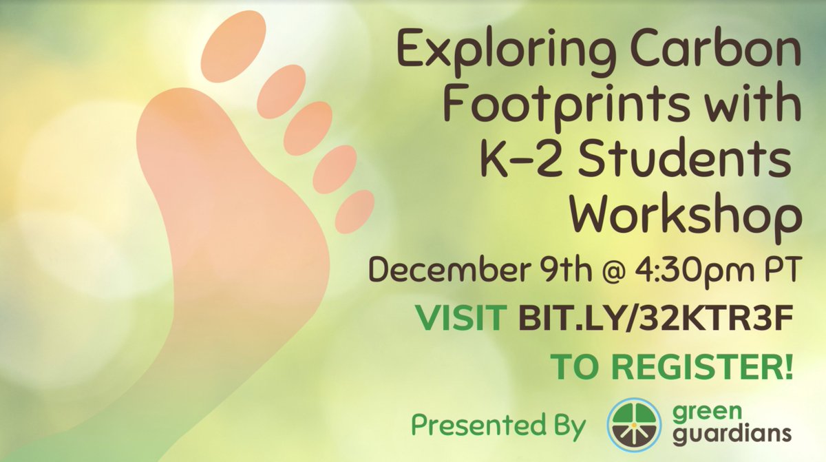 Green Guardians is hosting a FREE professional learning workshop for California K–2 teachers interested in incorporating more science and environmental literacy in their instruction. Register here: http://newsletter.greenguardians.com/professional-learning-workshop-carbon-footprint …