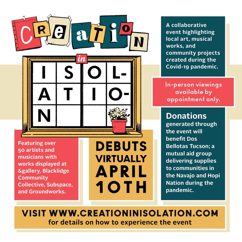 Wondering how you can experience our upcoming show, Creation in Isolation? The show will be debuting virtually Saturday, April 10th at 10am AZ Standard Time. Over 50 artists will be featured by Subspace, &Gallery, Groundworks, and BCC. http://creationinisolation.com pic.twitter.com/XpEHs23S4q
