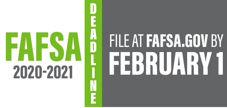 A little more than two weeks remain until the February 1 FAFSA filing deadline! Please share this upcoming deadline in your communities so no one misses out! Students must file the 2020-2021 FAFSA at http://FAFSA.gov !pic.twitter.com/wCyYtpnsCl