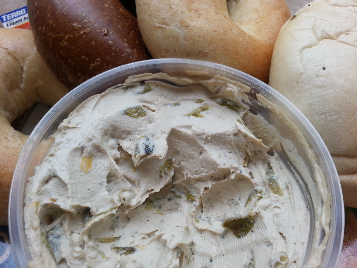 Bagels, green chile cashew cream cheese, and more! Join me at 9:15 am PST