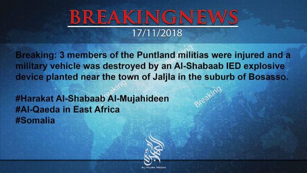 #AlShabaab Claims IED Attack On #Puntland Security Force Near The Jaljla Town In #Bosaso. #TerrorMonitorpic.twitter.com/ULJXtBRuNr