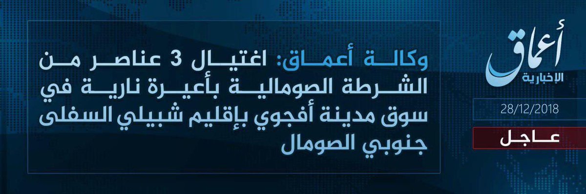 #IslamicState Claims Killing 3 Policemen In #Afgoye. #TerrorMonitorpic.twitter.com/2Jpgpzs9Zl