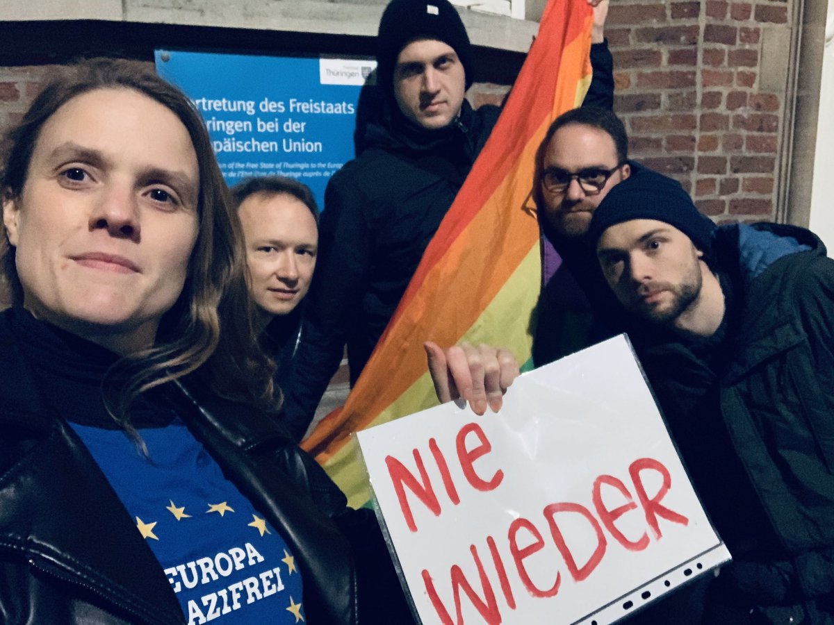Protest in front of the Thuringian representation in Brussels. We stand against the normalisation of fascists.https://twitter.com/TerryReintke/status/1225145467971031041 …
