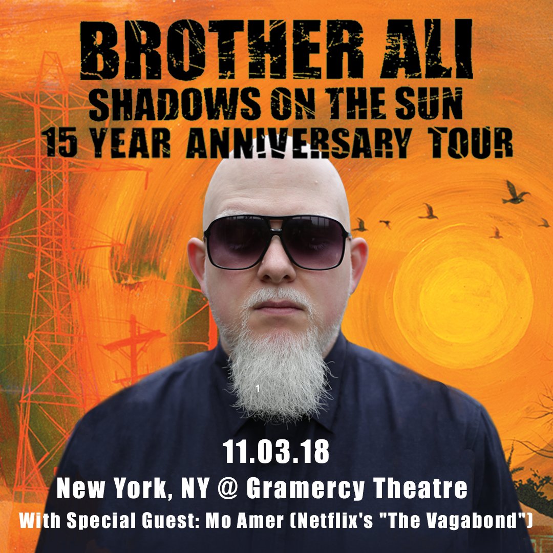 NEW YORK CITY: Are you ready? @BrotherAli is performing all of #ShadowsOnTheSun TONIGHT at @GramercyTheatre!