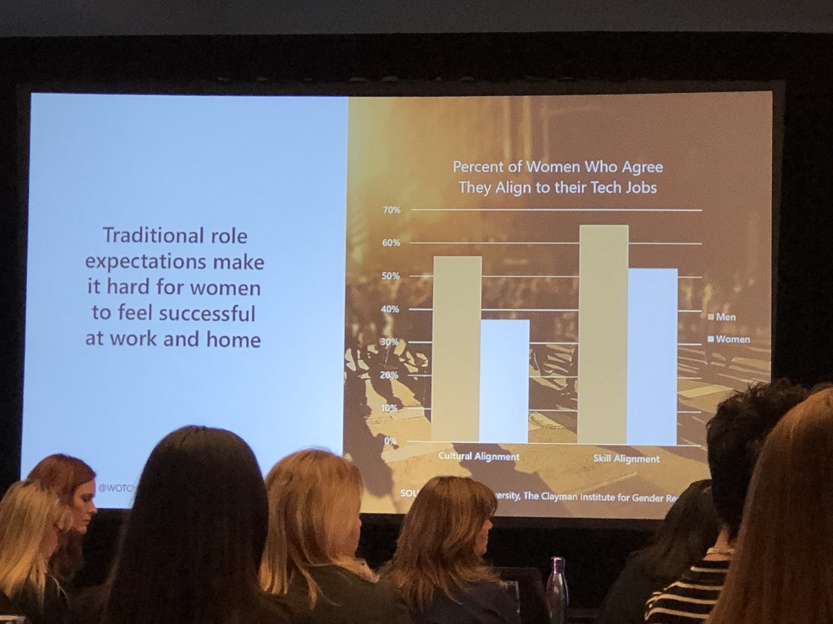 Only 35% of women believe they align culturally with their tech jobs. Alyssa Fitzpatrick @WOTChannel #WOTC18 #bethechangepic.twitter.com/IrrQkps3sP