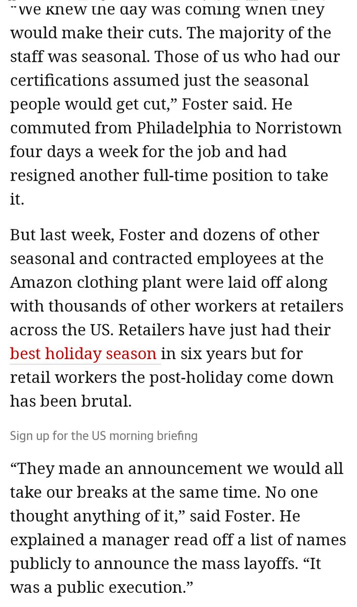 Amazon dangles false hope of a permanent job to contracted employees, only to throw them away when they're no longer needed https://www.theguardian.com/business/2019/jan/24/retail-workers-layoffs-schedules-holiday-season-ends … pic.twitter.com/4Utv0iusX8