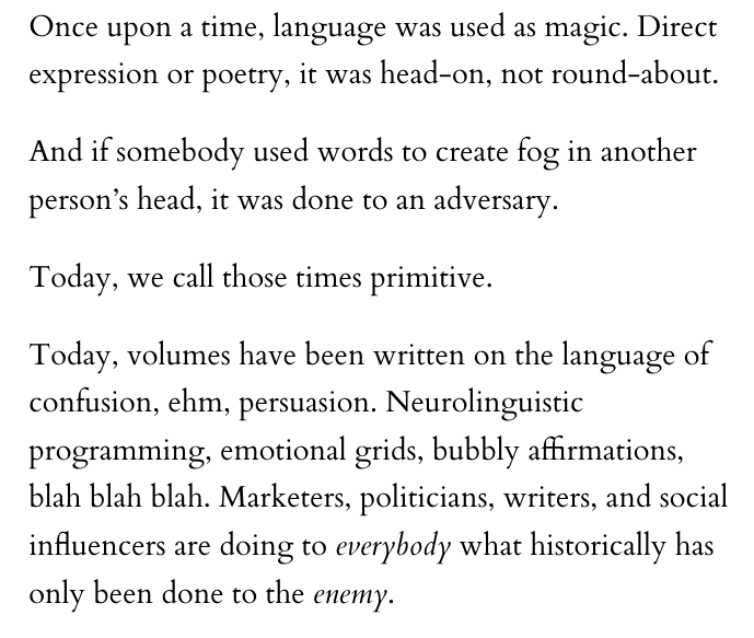 Language shapes our reality. There are many commercially-minded entities that use language as a weapon against us. They view us as Product at best, Food at the Table at worst. It's on us to resist! #MakeLanguageGreatAgain https://buff.ly/2TEgkK9 pic.twitter.com/sPIWJEArHg