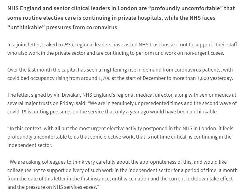 High level attempt to 'shame' private hospitals & staff to help the NHS++ in London