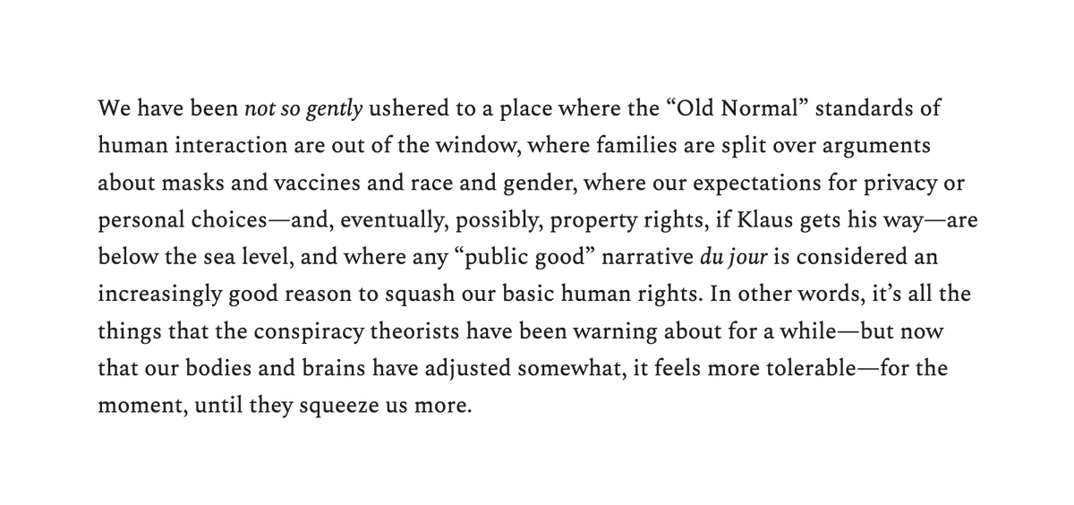 Genuine hugs, not behaviorist nudges! I feel much love for the world and so many people, and at the same time, I stand straight and insist that anyone who has ever been a WEF young leader has no business in any position of authority.