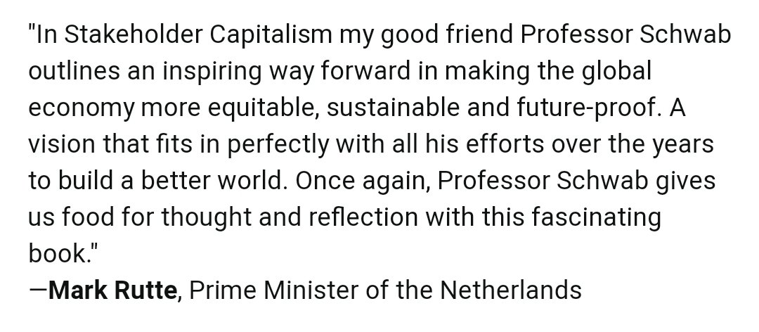 Herr Schwab's new book has that fine Borat-feel title: ☠ Stakeholder Capitalism: A Global Economy that Works for Progress, People and Planet ☠ ⬇️ "reviewed" by Dutch PM Mark Rutte & Belgian PM Alexander De Croo - soldouts already in Schwab's ass - working their way up.pic.twitter.com/cgiZNv3F4n