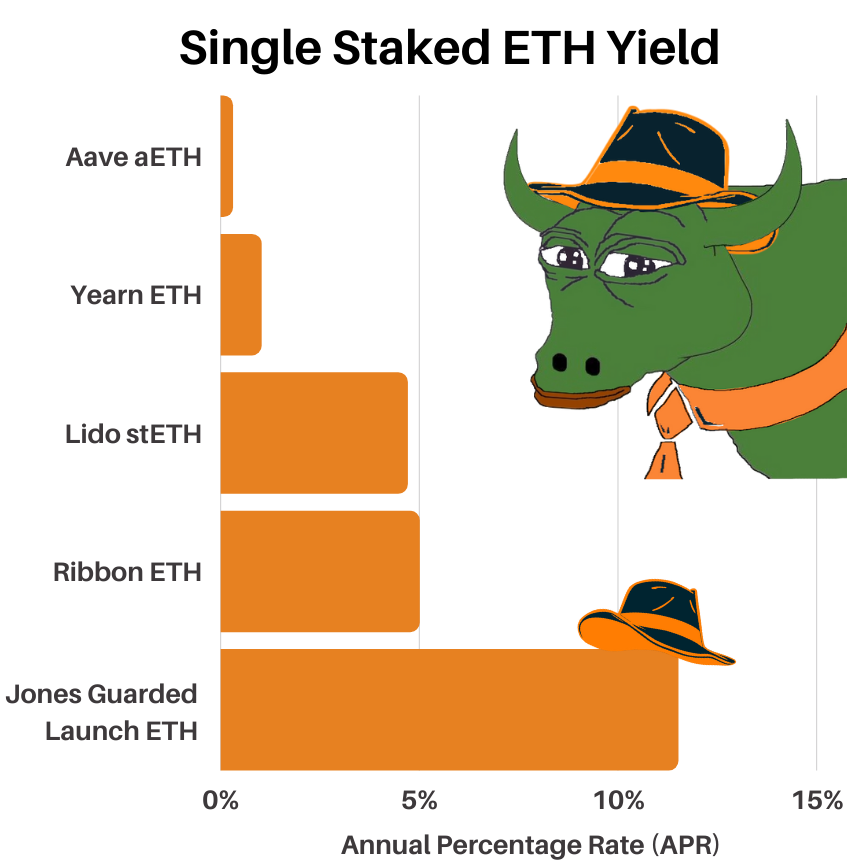 The ROI on $ETH for the guarded launch epoch was ~0.91%, which is an APR of ~11.51%. Guarded Launch members can now claim their ETH at https://guardedlaunch.jonesdao.io/ pic.twitter.com/8rmy0Wj5be