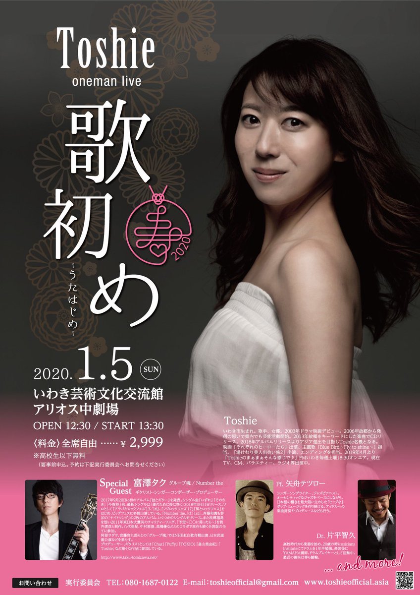 #Toshie♡寿2020歌初めホールワンマンライブSpecialguestさま#湯本一小合唱部チーム寿♡さん#TSUMUJI-KAZE 隆さん久美子さん#矢舟テツローさん#片平智久さん#富澤タクさん#いわき芸術文化交流館アリオス中劇場#皆様のお越しを心よりお待ちしております