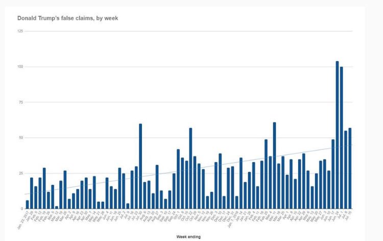 @realDonaldTrump is a proven pathological liar. The density and frequency in the aggregate per “day”; 2017 = 2.9 lies vs 2018 = 5.1 lieshttps://twitter.com/ddale8/status/1019780613736402944?s=21 …